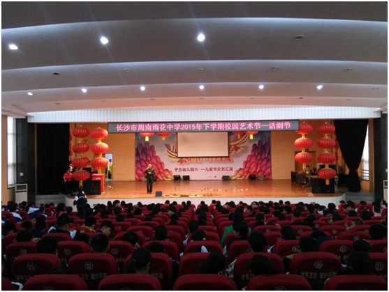 在雨花区艺体科技中心的全面指导下,在学校何亚松校长和话剧社社长戚一明、许靓两位老师的精心组织和策划下,周南雨花中学首届话剧节的决赛展示环节在学校的五楼剧场隆重举行。由孩子们自编自导自演的话剧《互换角色》、《科举制度》、《白雪公主与三个矮人》、《大话西游》、《都是上网惹的祸》、《如此家长》和《刘老师家访》等话剧小品,博得了在场观众的阵阵掌声与笑声。孩子们精湛的演技和完美的表现,全面彰显了他们的创造力、表现力、合作能力,这些角色的诠释仿佛是孩子们在用另外一种方式诉说着自己的心声。