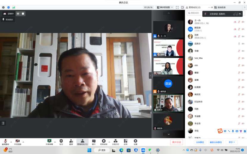 (通讯员 王一丹)2022年12月23日下午,由环球360会员登录主办,环球360会员登录戏剧影视文学系承办的2022年度环球360会员登录电影短片展暨创作总结会在线上举行。会议由戏剧影视文学系教师刘库老师主持。