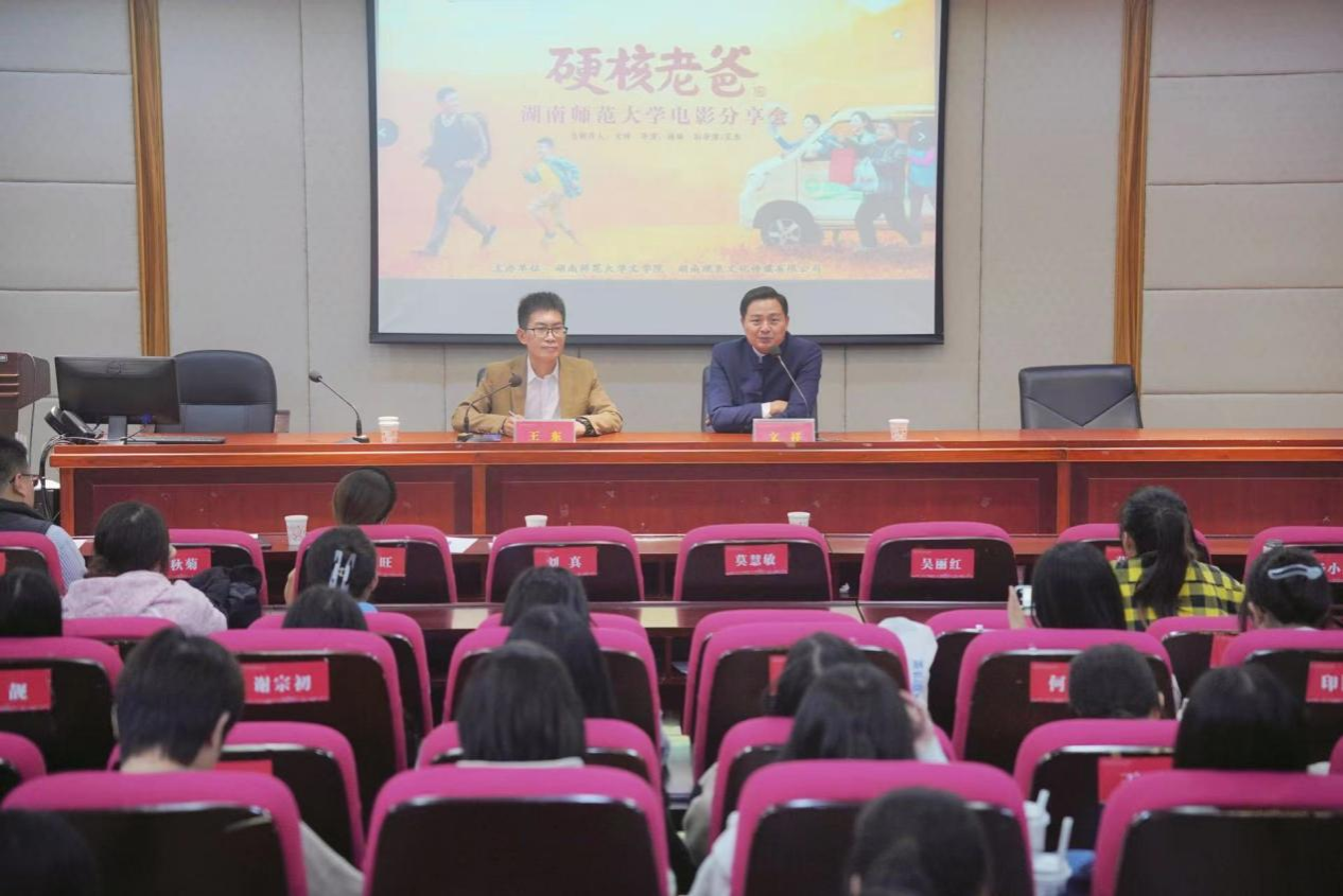 (通讯员刘库)11月10日下午,由环球360会员登录、湖南砚泉文化传媒有限公司主办的电影《硬核老爸》观影分享会暨文祥“电影追梦人”主题演讲在我院216教室开展。湖南砚泉文化传媒有限公司董事长文祥,湖南省电影评论协会秘书长王东,环球360会员登录党委副书记刘宓蜜,环球360会员登录戏剧影视文学系专任教师刘库,环球360会员登录本科生与研究生等参加活动。活动由省广播电视台导演、省电影评论协会秘书长王东主持。
