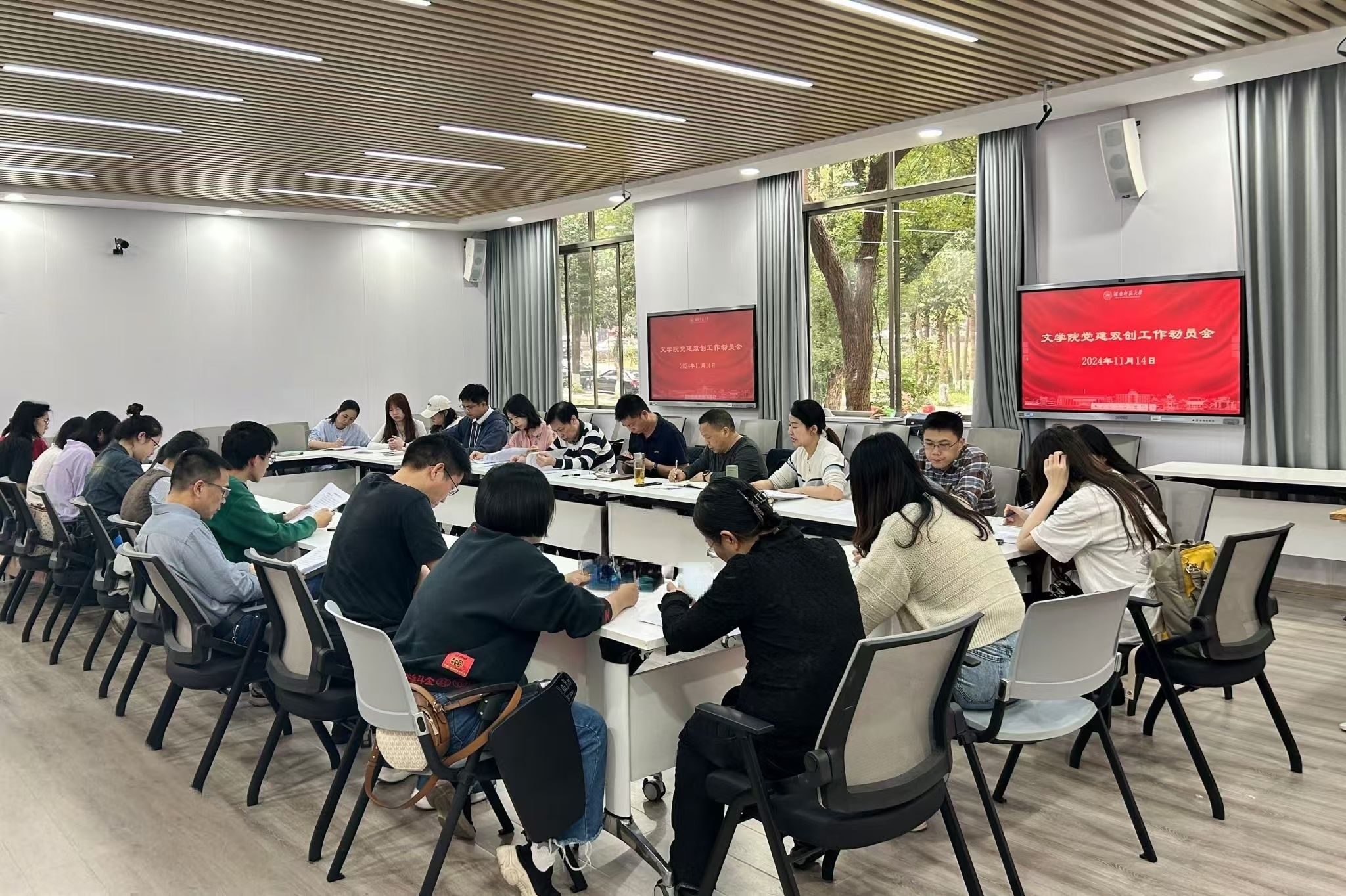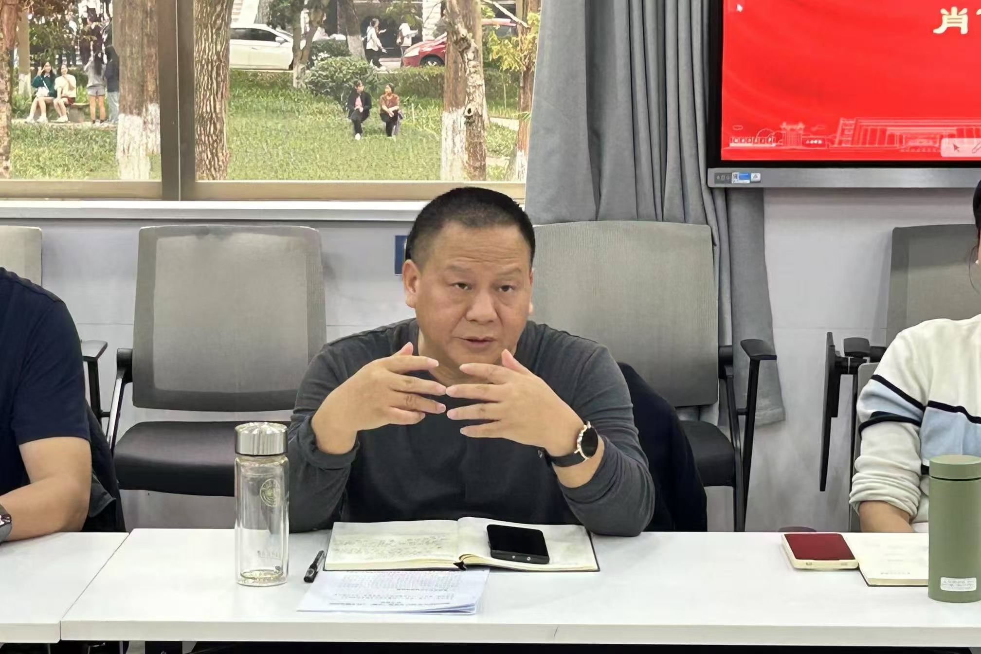 通讯员(王颖)为推动高校党建工作向高质量发展迈进,加快一流大学和一流学科建设,进一步推动学院党建工作取得新进展,2024年11月14日下午3点,学院党委在我院213教室召开党建双创工作部署会,党委书记熊剑峰、院长肖百容、专职组织员夏云飞、各基层党支部书记、党委办、学工办、研究生办全员参与,会议由学院党委副书记刘宓蜜主持。