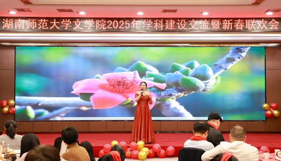 牟方磊老师声情并茂演绎《朋友别哭》,让现场观众们感受到了友情的温暖与力量。高明阳老师带来的笛子吹奏更是让人陶醉其中,笛声悠扬而富有感染力,为联欢会增添了一抹亮色。彭泽润、李馨、丁加勇、易瑛、张德强、刘小嵌、黄耀红、周葵葵老师带来的交谊舞表演《相逢是首歌》氛围热烈而欢快,他们的舞姿优雅大方,赢得了观众的热烈掌声。
