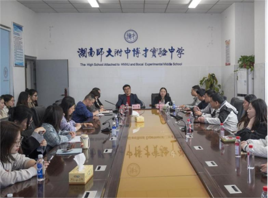 博才实验中学实习领导小组、实习队指导老师杨云萍教授、郭鹏飞教授及全体实习队员参与会议。