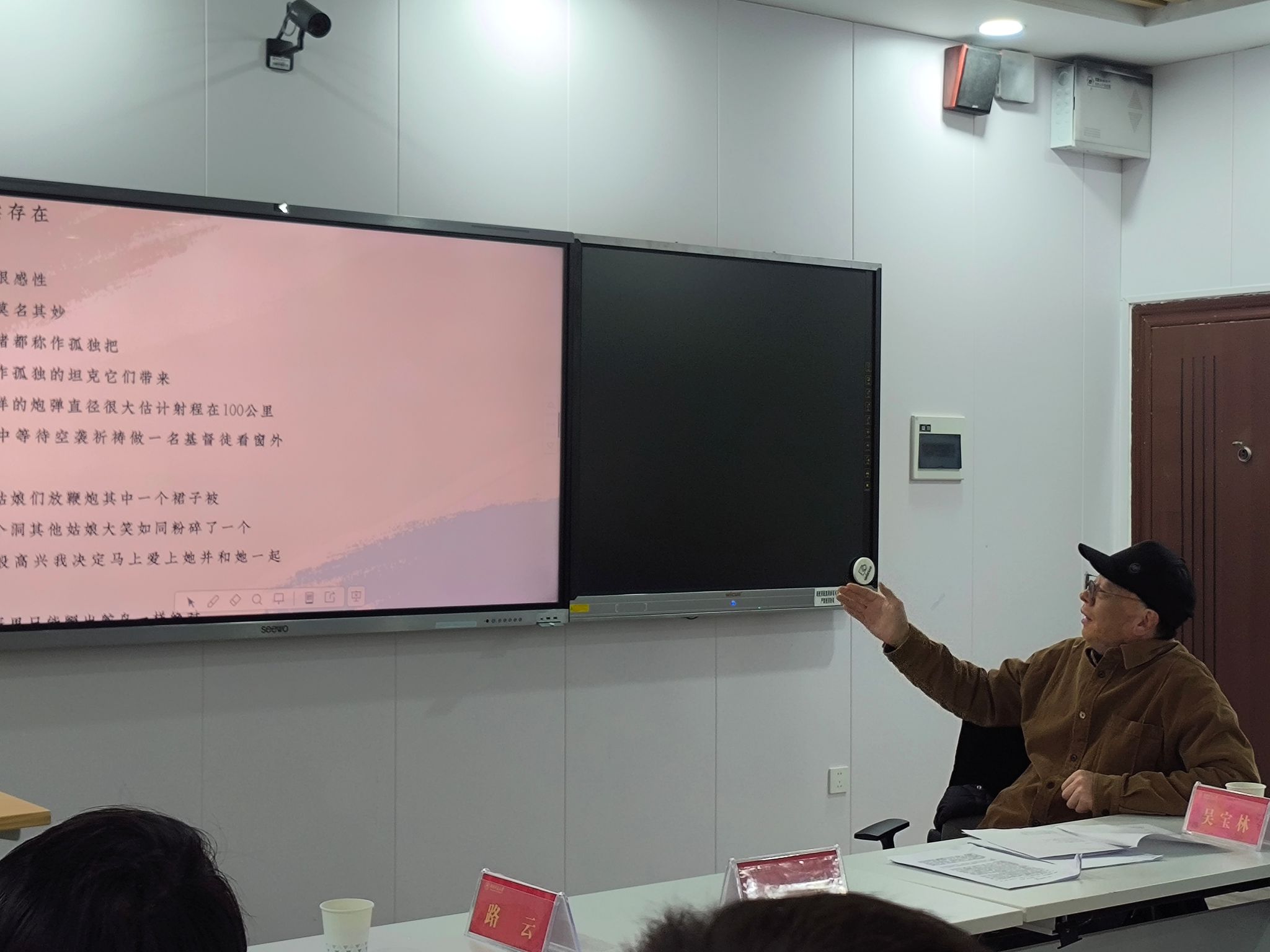 余怒老师的讲座主题是“寻找非表达文本”。他首先阐述了传统表达性文本与当代非表达性文本之间的差异,认为表达性文本偏向于主体或代理人,在表意上往往是单一的和独断的,而非表达文本偏向于读者,表意上具有多义性、模糊性和开放性,赋予读者更大的阐释空间。他认为,诗歌的魅力在于那些未被说出的部分,它邀请读者参与到文本的创造过程,重新赋予文本以意义。其次,他还从诗歌写作与时代文化的关系出发,强调写作是一种去蔽和解放旧的因果关系的过程,主张诗写者应该在每首诗中建立新的、即时的关系,通过语言的创新对文化进行去蔽。