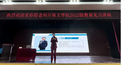 (通讯员黄迎迎 王金国 陈晓岚)2月28日下午,我院2022级汉语言文学(师范)专业教育见习讲座于江边活动中心举办。吴彩霞应邀作讲座,中文系副主任刘光成主持,2022级汉语言文学(师范)专业全体学生参加此次会议。吴彩霞是湖南师范大学附属中学高级教师、湖南师范大学学科教学(语文)专业硕士生导师、全国五一巾帼标兵、湖南省芙蓉百岗明星、长沙市优秀班主任、湖南师大附中师德标兵。吴老师一腔热情、无怨无悔、甘于奉献,担任班主任工作近30年,用青春和奉献铸就了“师者”的典范。